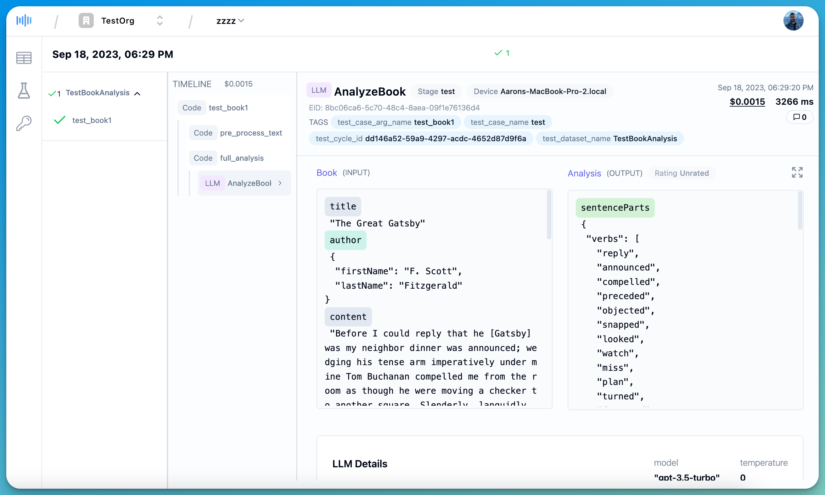 In the example below, we trace each of the two functions pre_process_text and full_analysis: